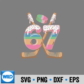 Hockey 67 Ice Cream Drip Youth Six Seven Hockey Crisp Design SVG PNG. Pixel-perfect SVG vector and ultra-clear PNG digital download delivering consistently sharp edges and smooth curves. Ideal for detailed decorative cuts, fine-line vinyl, and premium apparel printing.