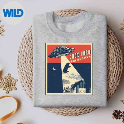 Alien Farm Abduction Beam Funny Retro Bacon Lover Ufo Pig