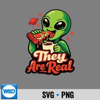 Hey Are Real Alien Pizza Coffee Space Illustration