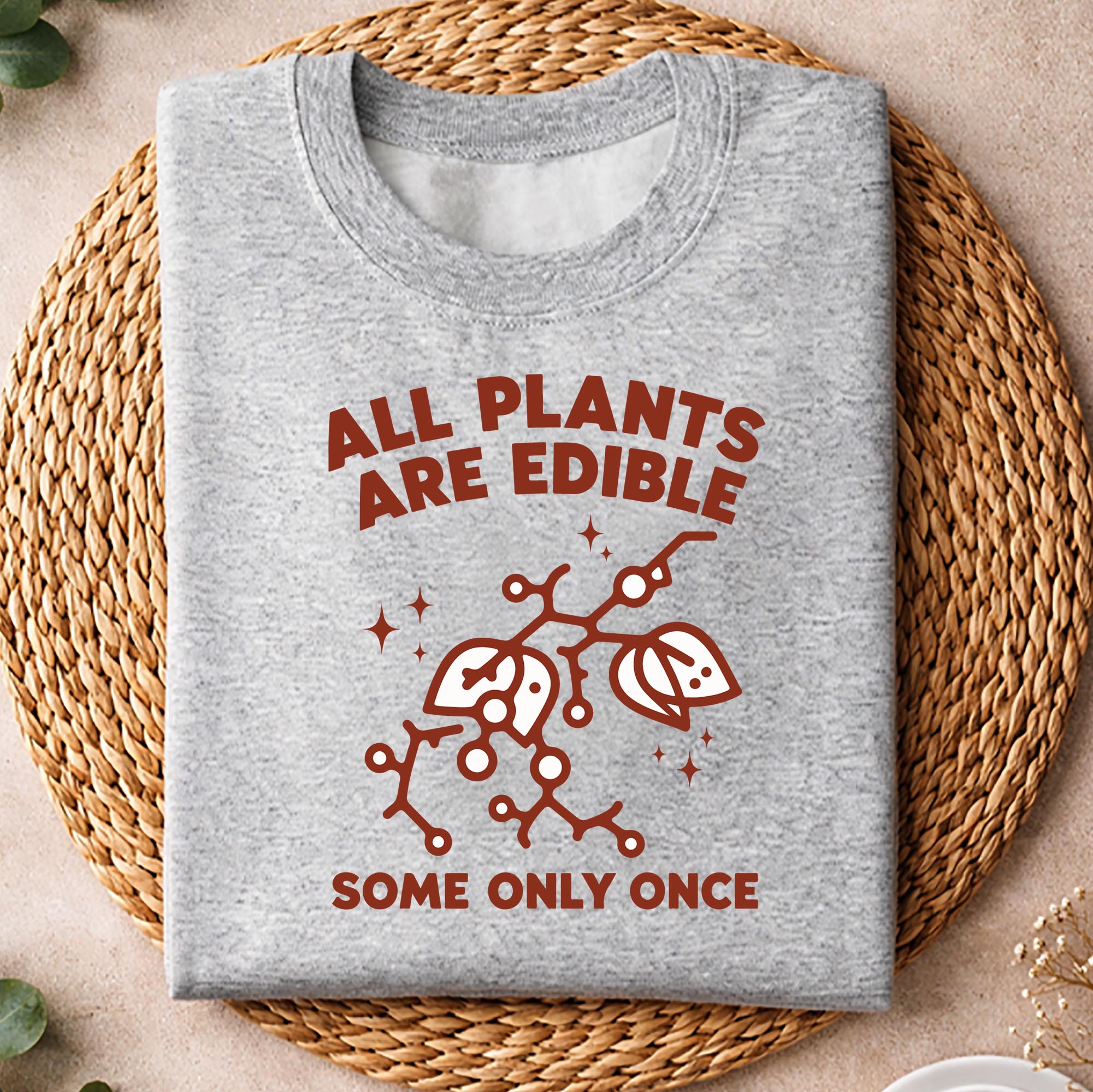 If your humor thrives on the wild side, this design is made to spark laughs and double takes. Featuring the cheeky phrase “All Plants are Edible Some Only Once,” it’s the perfect blend of dark humor and nature-inspired wit that instantly grabs attention and keeps the conversation going. This piece is ideal for plant lovers, gardeners, hikers, and anyone who appreciates a clever, slightly sarcastic twist on everyday life. Whether printed on a shirt, mug, or wall art, it adds personality and humor to your wardrobe or space while showing off your unique sense of style. It’s especially great as a funny gift for friends who love plants but also enjoy a bit of edgy humor. Designed with versatility in mind, it works beautifully as a casual everyday outfit statement or as a standout gift for birthdays, holidays, or special occasions. Keywords like funny plant shirt, dark humor gift, botanical joke design, and sarcastic nature lover apparel make it easy to find and hard to resist. If you’re looking for something memorable, witty, and guaranteed to get a reaction, this design delivers every time.