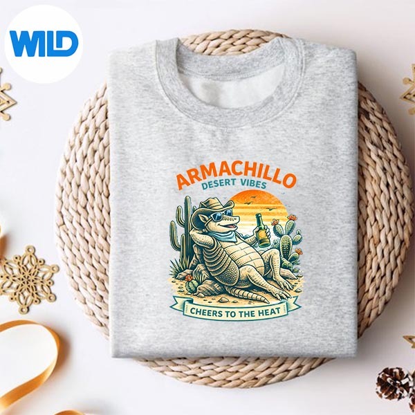 Feel the heat, embrace the wild, and let your style roam free with this bold desert inspired design that captures pure summer attitude. Featuring a laid back cowboy armadillo soaking up those sun drenched vibes, this piece brings humor, personality, and a touch of western charm to your everyday life.