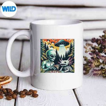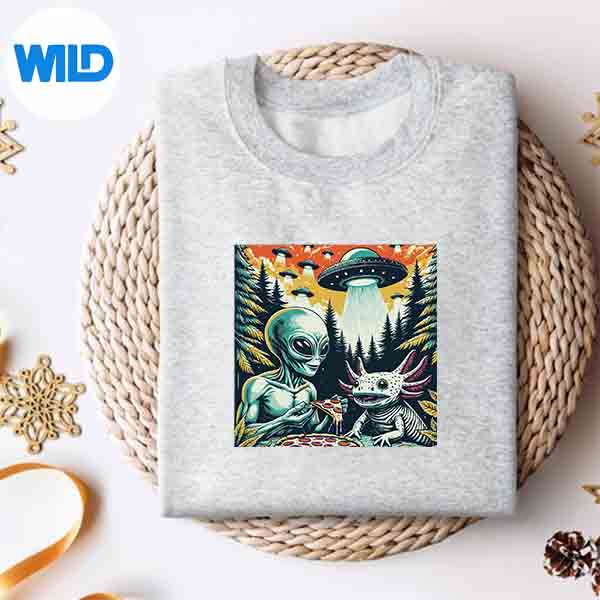 Axolotl And Alien Eating Pizza Ufo And Axolotl Lover