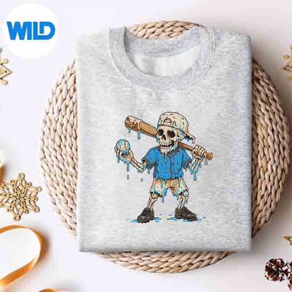 Baseball Skeleton Ice Cream Drip Baseball Youth SVG Cut File