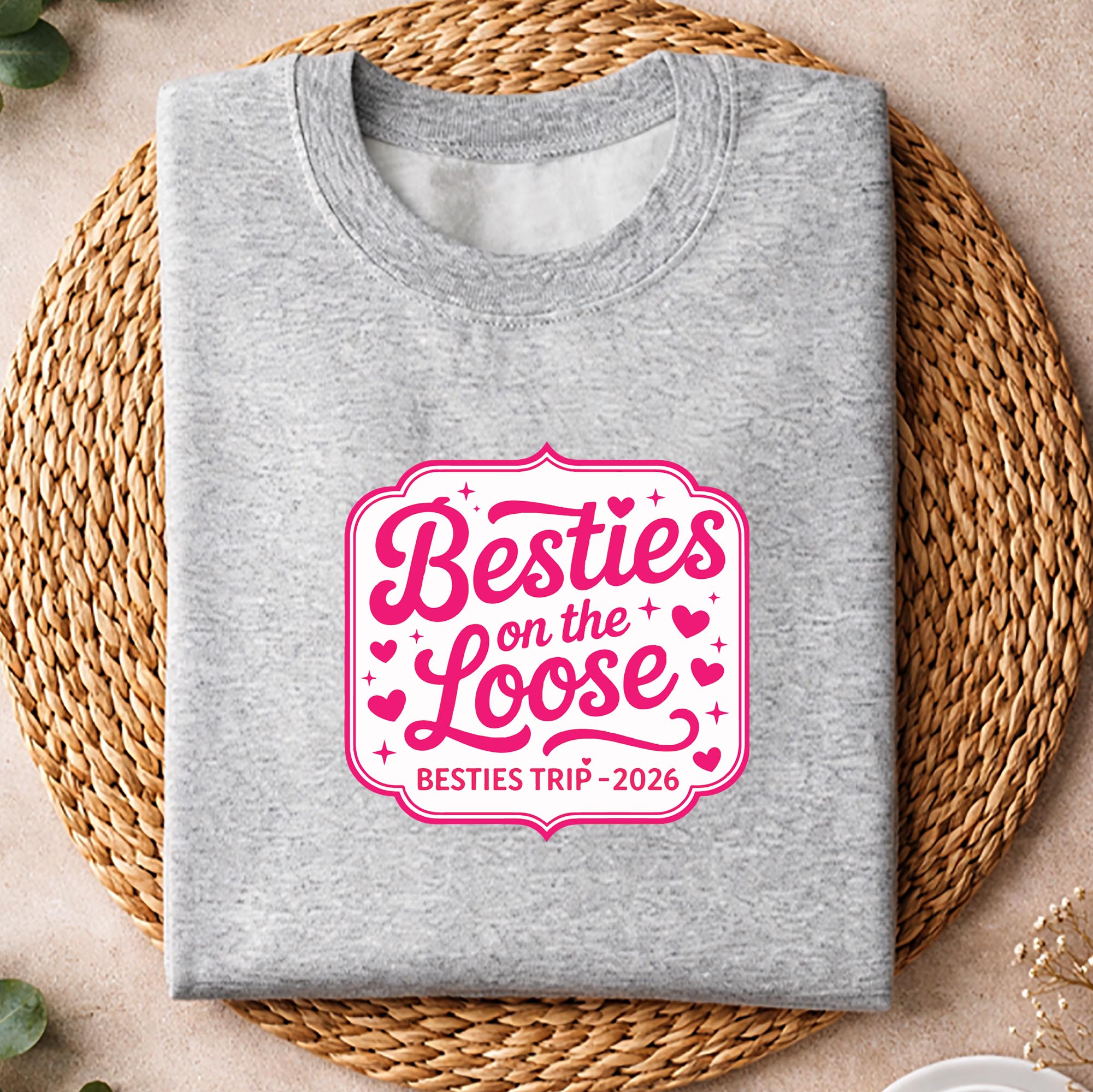 Grab your favorite people and let the adventures begin with this fun and unforgettable Besties on the Loose 2026 Shirt. Made for laughter filled road trips, spontaneous getaways, and memory making moments, this design captures the energy of friendship and freedom in the best way. Whether you are planning a girls trip, a beach vacation, or a weekend escape, this shirt brings your group together with a playful vibe that stands out in every photo. It is perfect for matching outfits, travel aesthetics, and creating those social media worthy memories you will look back on for years. Soft, comfortable, and easy to style, it pairs effortlessly with jeans, shorts, or cozy travel layers. This makes it an ideal choice for long flights, sightseeing days, or casual nights out with your crew. Looking for a meaningful and fun gift This shirt is a perfect choice for birthdays, bachelorette trips, or friendship celebrations. It is more than just apparel, it is a reminder of shared laughs, inside jokes, and unforgettable journeys. Celebrate your bond and make 2026 the year of adventure with a shirt that says it all.