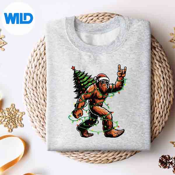 Santa Bigfoot Christmas Tree Xmas Lights Sasquatch