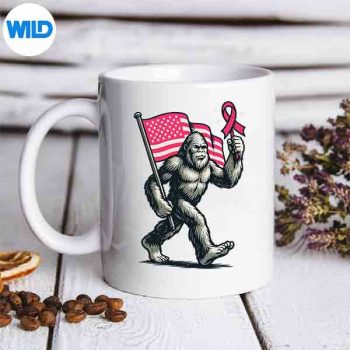 Bigfoot Pink Ribbon Breast Cancer Awareness Support Squad Retro