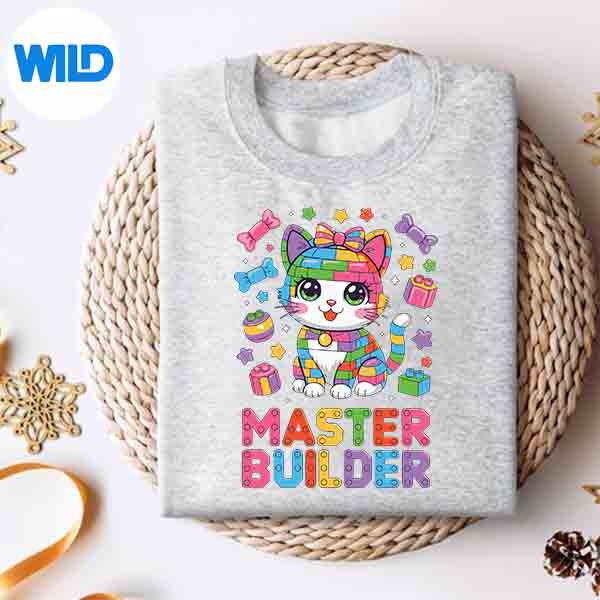Master Builder Cat Lover Building Bricks Blocks Girls