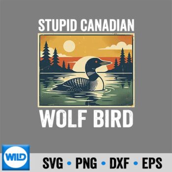 Stupid Canadian Wolf Bird Loon Humor Cute Visionary Digital SVG PNG File. Future-seeing digital download with vision-guided SVG vector design direction and forward-looking PNG format optimization strategies. Perfect for progressive craft businesses investing proactively in digital assets aligned with evolving market quality expectations and buyer preferences.