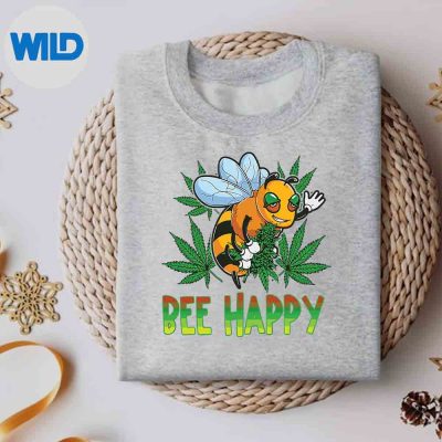 Funny Bee Happy Cannabis Weed Leaf Marijuana 420 Day Stoner