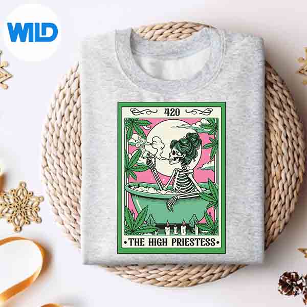 Cannabis Weed Skeleton Smoking The High Priestess Tarot Card
