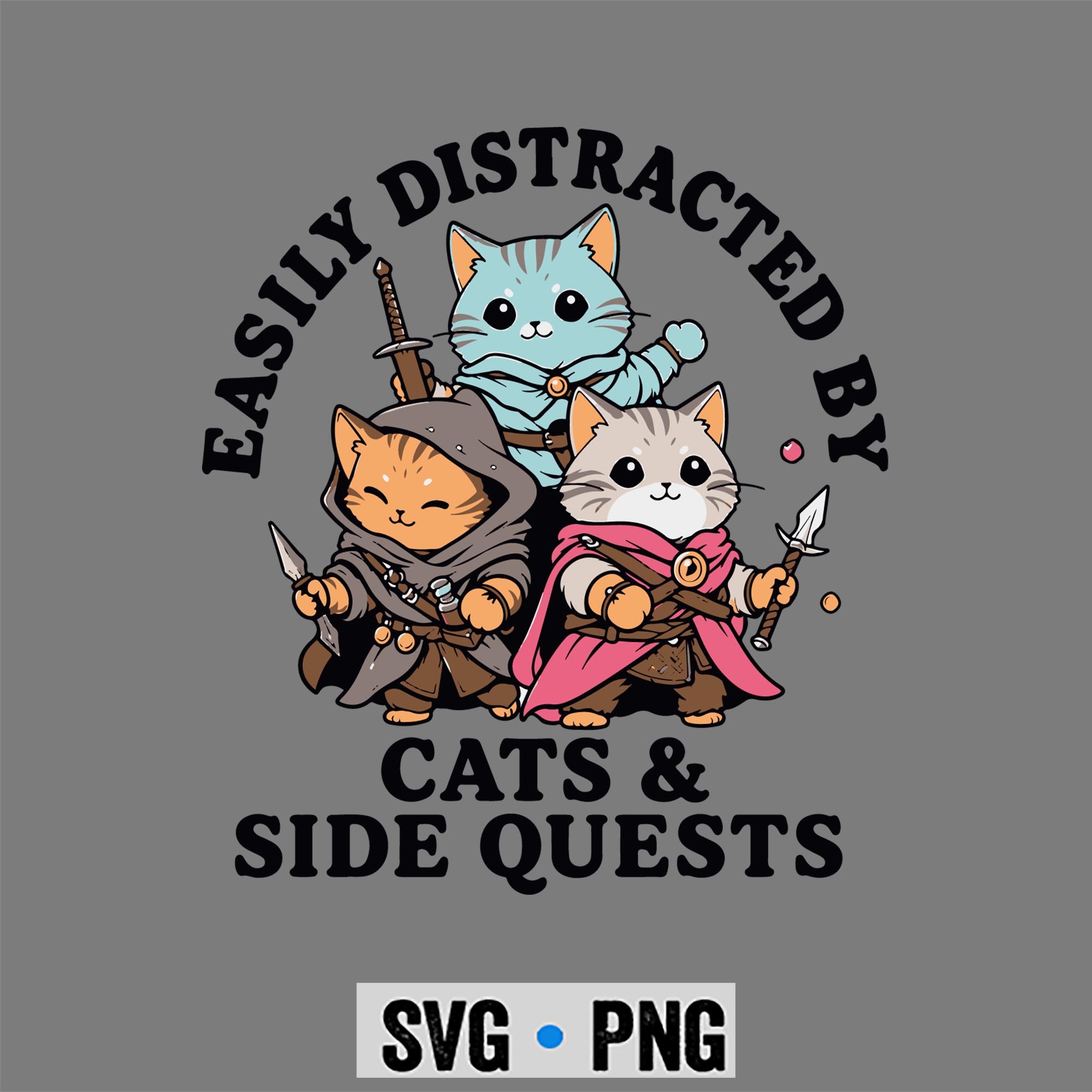 Cats Side Quest Distracted Tabletop Funny Gaming SVG PNG