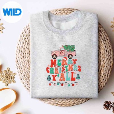 Merry Christmas Yall Santa Retro Red Truck Pajamas Groovy SVG Cut File