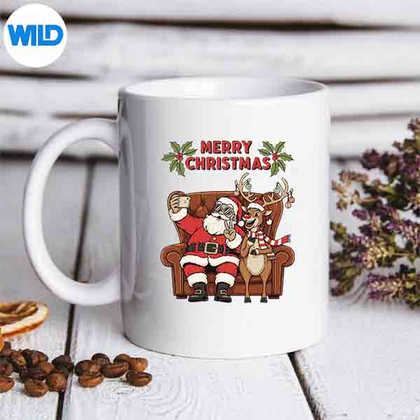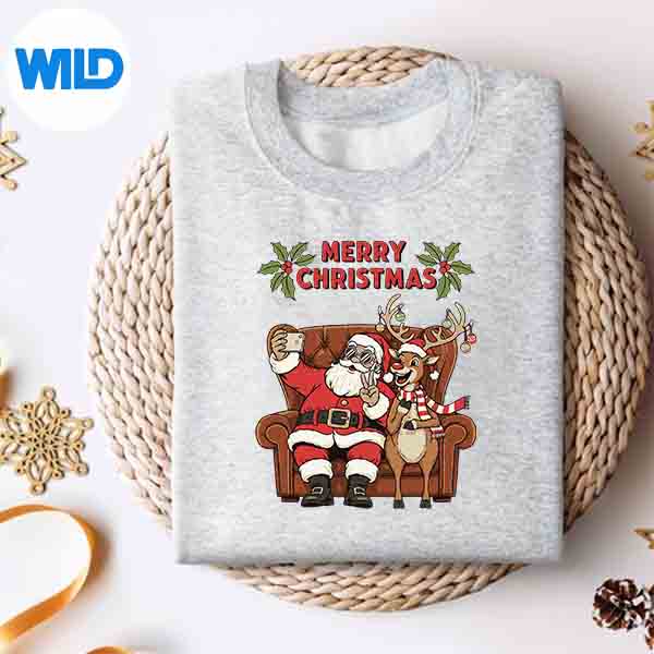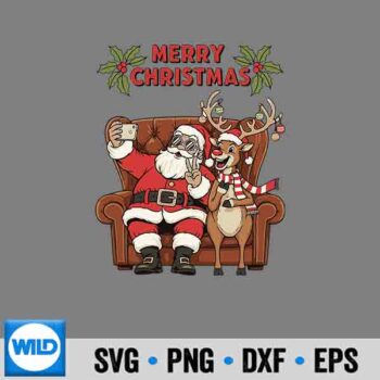 Merry Christmas Cozy Selfie With Reindeer On Comfy Couch Joy