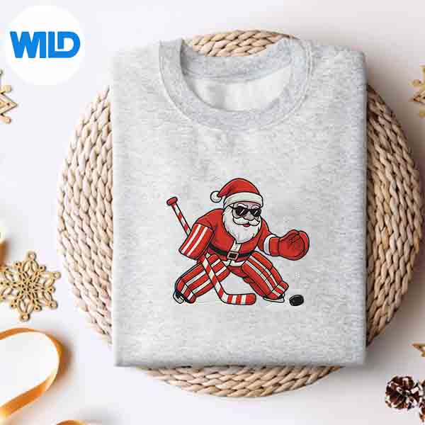 Santa Playing Ice Hockey Goalie Christmas