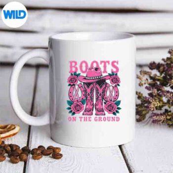 Boots On The Ground Pink Western Cowgirl Breast Cancer Smooth Output SVG PNG. Rendering-optimized SVG vector and high-fidelity PNG digital download producing smooth, artifact-free results every time. Perfect for premium sublimation printing, professional vinyl cutting, and high-end apparel decoration.