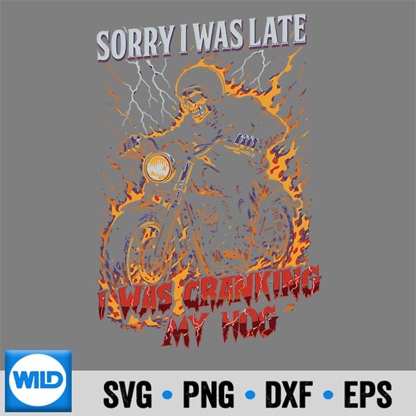Sorry I Was Late I Was Cranking My Hog Skeleton Biker Silhouette SVG PNG Cut File