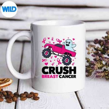 Crush Breast Cancer Awareness Monster Truck Halloween Ghost Funny