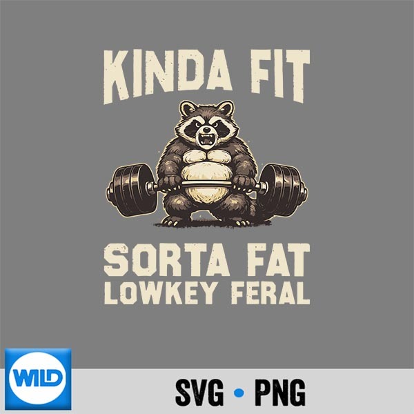 Kinda Fit Sorta Fat Feral Gym Raccoon Weightlifting Workout SVG PNG Craft Gem File. Precious-find digital download with rare-quality SVG vector craftsmanship and exceptional PNG format execution representing genuine digital asset treasure. Perfect for discerning craft collectors building elite digital libraries around only the most outstanding available assets.