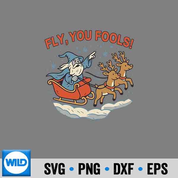 Fly You Fools Santa Sleigh Reindeer Christmas
