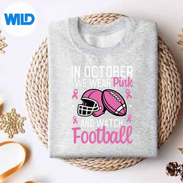 In October We Wear Pink Football Breast Cancer Awareness