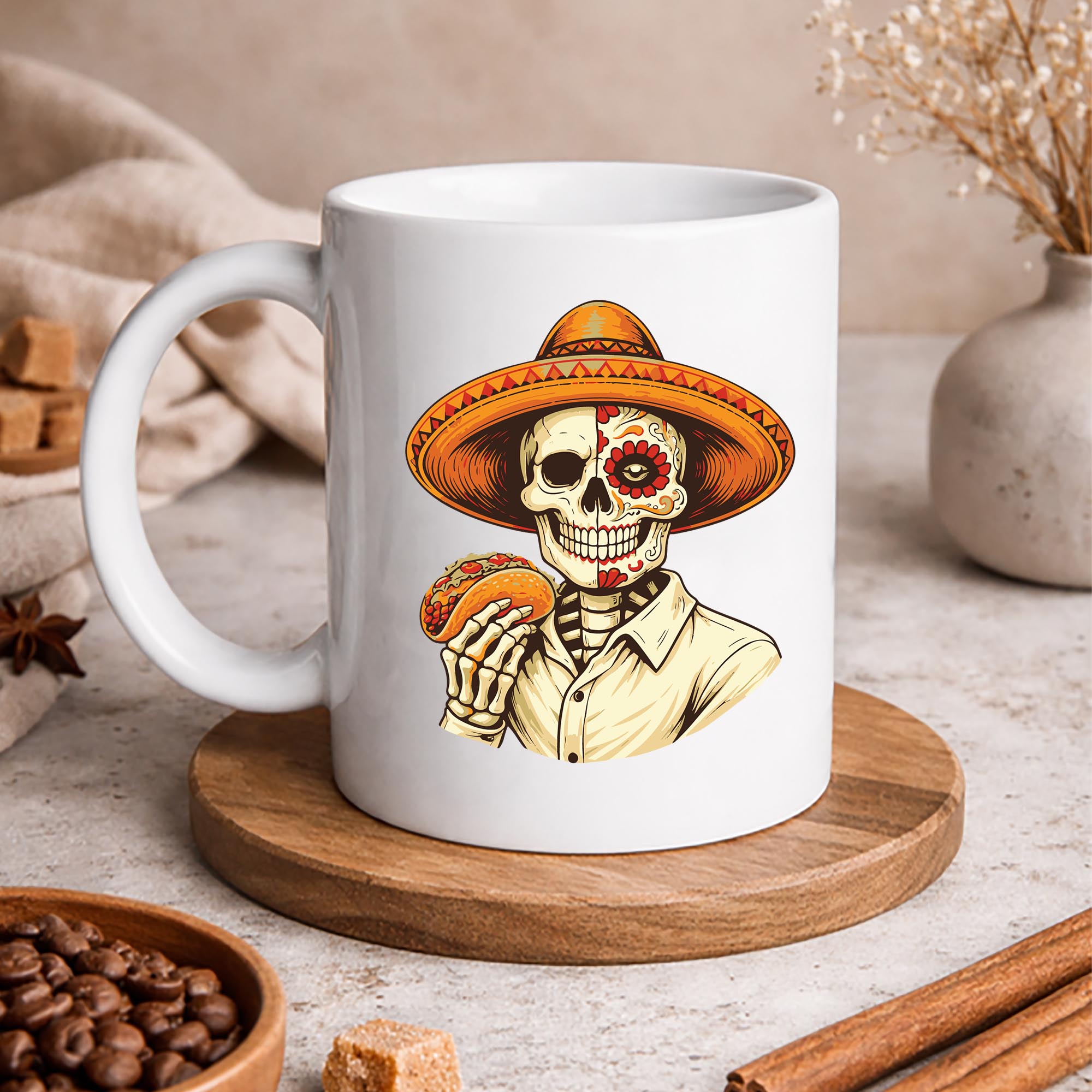 Turn heads and spark laughs the moment you walk in with this playful, fiesta-ready design that perfectly captures the spirit of Cinco de Mayo. Featuring a humorous skeleton enjoying a taco while rocking a sombrero, this eye-catching piece brings together bold personality, cultural celebration, and a love for great food in one unforgettable look. Perfect for taco lovers, partygoers, and anyone who enjoys a good laugh, this design adds instant fun to any outfit or space. Whether you are heading to a Cinco de Mayo party, hosting a taco night, or simply want to show off your love for Mexican food with a quirky twist, this is a must-have addition to your collection. It also makes a fantastic gift for friends, family, or coworkers who appreciate funny graphic tees, skeleton humor, or festive holiday vibes. Designed to stand out, this piece pairs effortlessly with casual wear and works great for print on demand products like shirts, hoodies, or even home decor. If you are searching for a unique Cinco de Mayo shirt, funny taco lover gift, or skeleton sombrero design, this one delivers charm, humor, and celebration all in one.