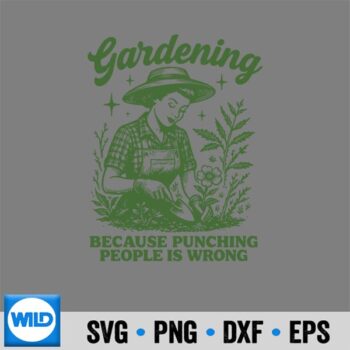 Gardening Because Punching People Is Wrong Sharp Craft SVG PNG File. Edge-definition-focused digital download with razor-sharp SVG vector boundaries and ultra-crisp PNG format edges for professional craft clarity. Ideal for fine-line vinyl cutting, detailed paper craft production, and high-definition sublimation printing applications requiring maximum sharpness.