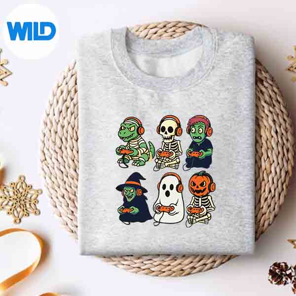 Halloween Gamer Dinosaur Skeleton Ghost Witch