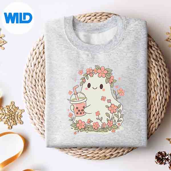 Ghost Bubble Tea Halloween Boba Milk Tea Flower