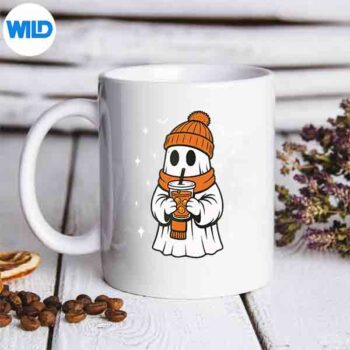 Ghost Drinking Coffee Halloween Ghost Iced Coffee