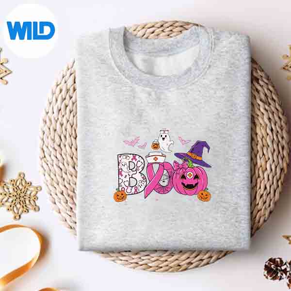 Boo Ghost Breast Cancer Awareness Nurse Witchy Pink Pumpkin
