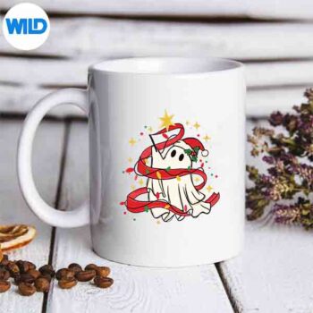 Retro Ghost Christmas Tree Santa Hat Spooky