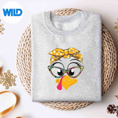 Thanksgiving Cute Turkey Face Colorful Floral Sunglasses SVG