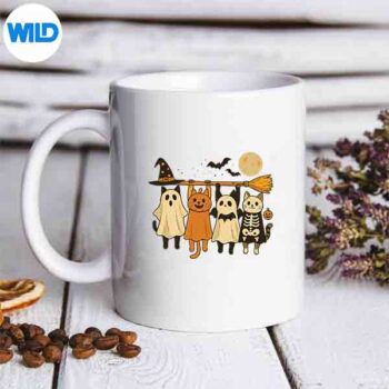 Cute Halloween Cat Ghost Pumpkin Skeleton