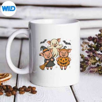 Three Halloween Pigs Cosplay Witch Boo Carved Pumpkin