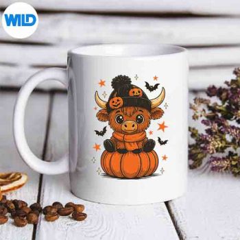 Retro Halloween Highland Cow Pumpkin Fall Cow Thanksgiving