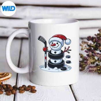 Cartoon Ice Hockey Puck Snowman With Santa Hat Christmas