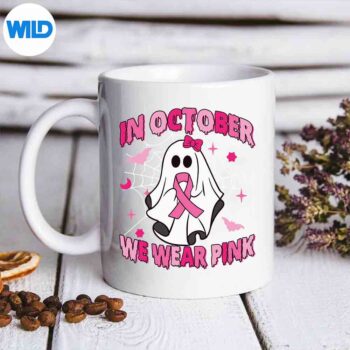 October We Wear Pink Ghost Halloween Breast Cancer Awareness Surprised Sad
