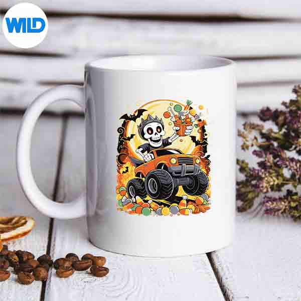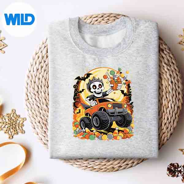 Skeleton Monster Truck Halloween Pumpkin Moon