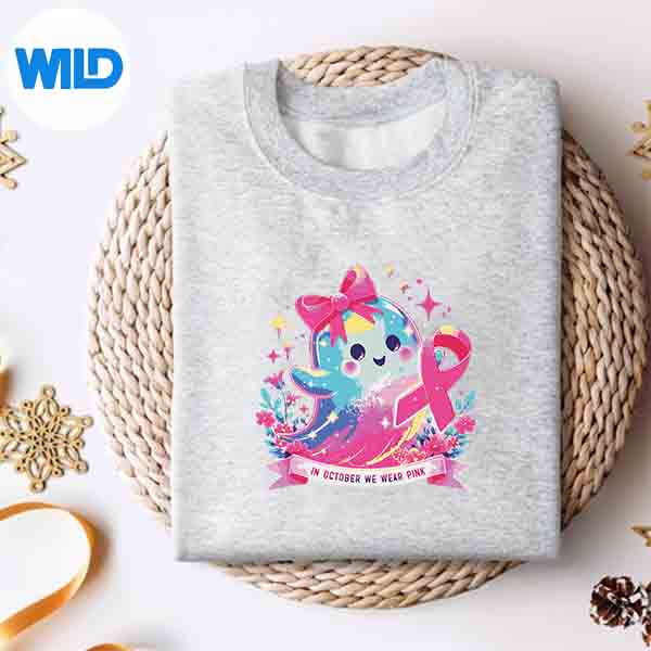 In October We Wear Pink Ghost Breast Cancer Halloween