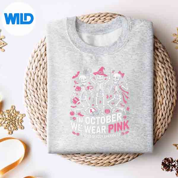 In October We Wear Pink Halloween Skeleton Breast Cancer