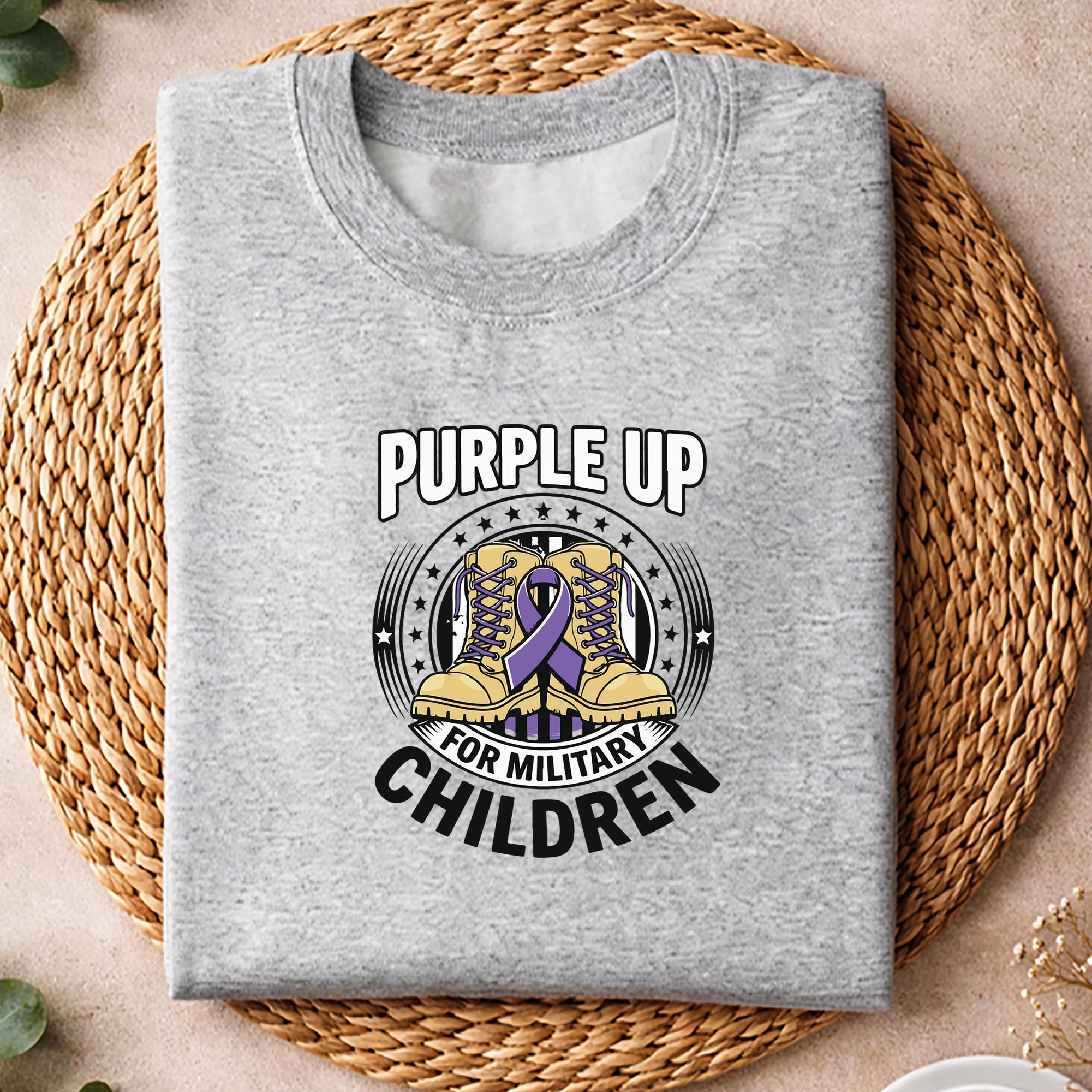 Show your support with pride and heart with this meaningful Purple Up design created to honor the strength and resilience of military children. Inspired by the spirit of the Month of the Military Child, this design brings awareness, unity, and appreciation to the everyday heroes who grow up in military families. Perfect for print on demand products like t shirts, hoodies, mugs, or tote bags, this design helps you create a powerful statement piece that sparks conversation and spreads positivity. Whether you are a proud military parent, a supportive teacher, or someone who values patriotism and community, this design allows you to wear your support proudly and make an impact. It also makes a thoughtful gift for military families, school events, Purple Up Day celebrations, or anyone connected to the armed forces lifestyle. With its strong message and eye catching purple theme, it stands out while staying meaningful and heartfelt. Celebrate courage, sacrifice, and unity while boosting your shop with popular SEO keywords like military child support, Purple Up apparel, patriotic gift, and military family pride. This design is more than just a look, it is a message that matters.