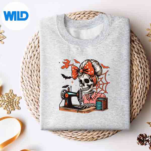 Messy Bun Hair Skeleton Sewer Quilter Halloween Quilting