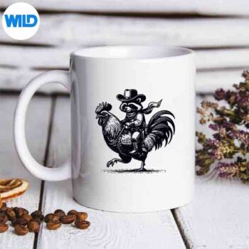 Raccoon With Cow Hat Boots Riding Rooster Vintage Small Grey