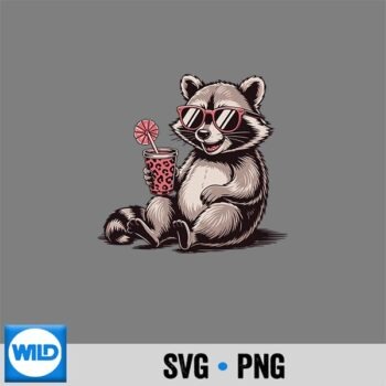 Raccoon Drinking Iced Coffee Animal