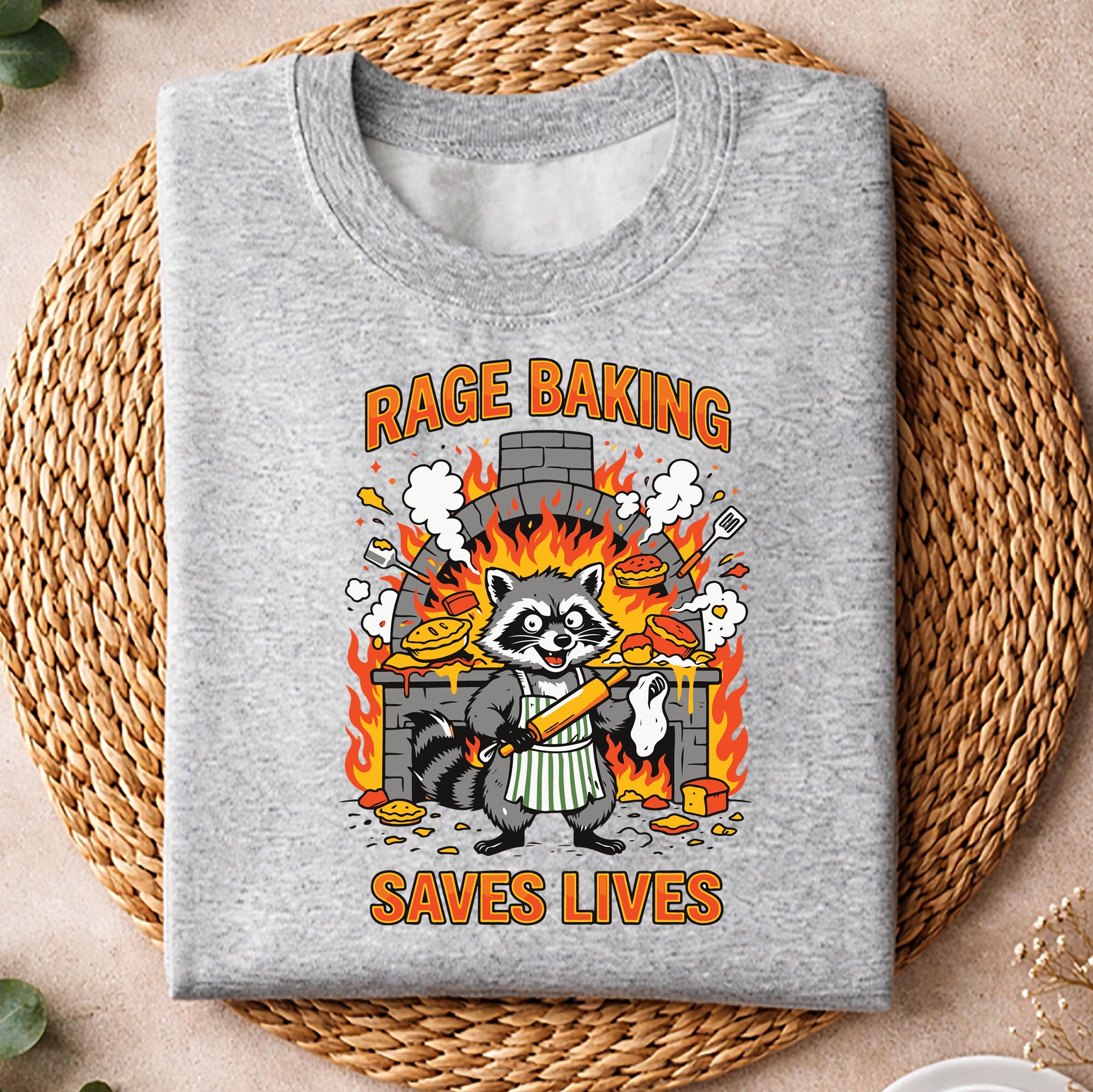 Sometimes the best therapy comes with flour on your hands and a little chaos in the kitchen. This playful design captures that perfectly, featuring a mischievous raccoon baker who knows that rage baking really does save lives, or at least your sanity. It is a fun and relatable way to show off your love for baking while embracing those not so calm moments that turn into something delicious. Perfect for anyone who finds comfort in mixing, kneading, and baking it out, this design adds personality and humor to your everyday style. Whether you are whipping up cookies after a long day or gifting something unique to a friend who loves baking and funny animal designs, this piece stands out with charm and attitude. Great for print on demand items like t shirts, hoodies, mugs, or kitchen decor, it brings a cozy yet cheeky vibe wherever it goes. Ideal for bakers, home cooks, stress bakers, and anyone who appreciates a good laugh, this funny raccoon baking design makes a memorable gift that feels both personal and entertaining.