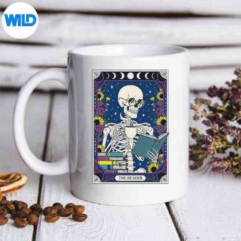 The Reader Skeleton Tarot Card Book Coffee Lover Bookworm