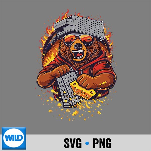 Retro Bear With Cheese Grater Hat And Sunglasses Sunse