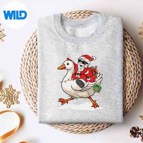 Santa Riding Goose Merry Christmas Pajamas Xmas