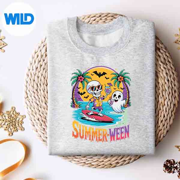 Skeleton Ghost Spooky Beach Holiday Summer Party Summerween