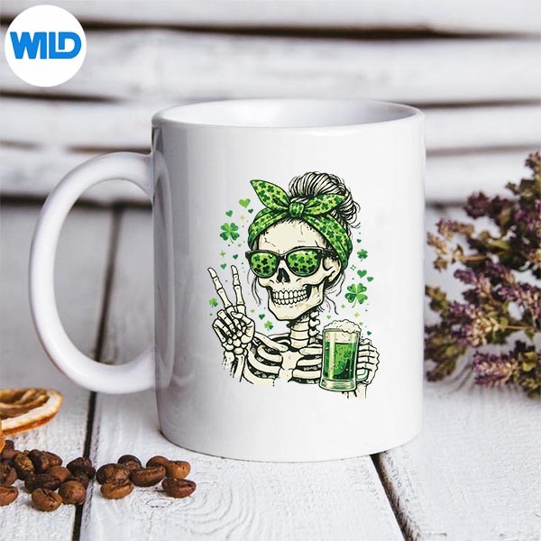 Skull Sunglass Messy Bun Irish St Patricks Day